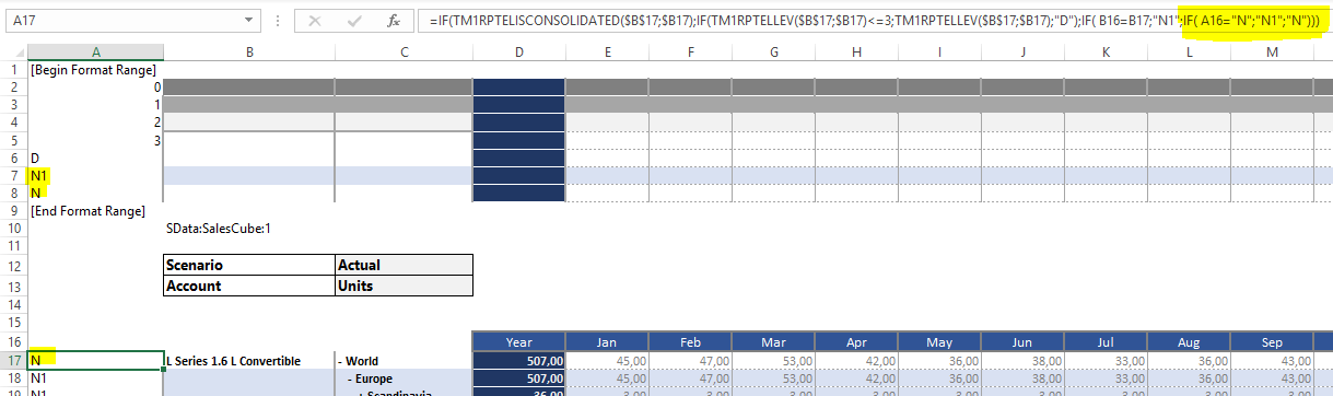 I did not talk about that last point but indeed: in general, smaller websheets will open up quicker in TM1 Web compared to bigger files. So no need to have these excess rows and columns on board ! Another added benefit of clearing unnecessary cells can be obtained when you use conditional formatting in the formatting range (which is hidden by default). Conditional formatting should only be in the hidden formatting area, and not active in many report rows. You can be sure that whenever the report is opened or refreshed, TM1 will apply the conditional formatting again. To conclude this article I add that I wrote my own VBA-code to automate all of the above manual steps. Even more the best of both worlds ! :-)
