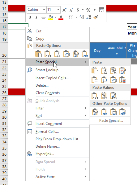Action 2 is done by positioning the cursor on the next row below the row with TM1RPTROW. Then press Ctrl + End while the Shift key is pressed. With Shift still pressed arrow down to select some more rows below the last row. Then, delete the selected rows. Pressing Ctrl + - is quickly done. Finally, you need to save the file to have Excel reset the used range from ALL523 to the last cell in the active form.