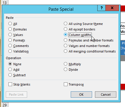 When you are building an active form based on an existing report, you can save time by applying column widths in an easy way: Go to the source report. Copy cells in 1 (or a few) rows in the columns for which you want to set the column width. Go to the new report, navigate to the first column that you want to change (no matter what row) and paste special the column widths. Done !