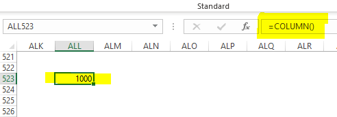 523 rows is what TM1 needs to output all relevant, zero-suppressed, rows. Column ALL in Excel is exactly column number 1,000: