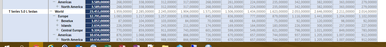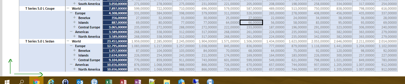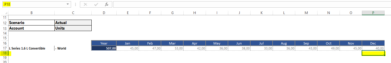 But what is a bug, at least to me, is the fact that TM1 uses space for 1000 columns in Excel. If you refresh the active form and you press Ctrl + End, you will end up here: