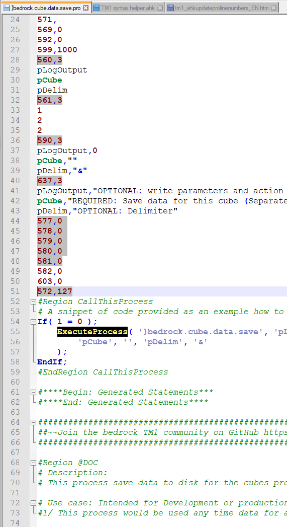 If you are like me, you probably also tend to update TI processes in a text editor like Notepad++, rather than the clients that the old TI editor. Whenever we are in development stages of a new model or a bunch of TI processes, it's just easier and faster. You would open up the *.pro file in Notepad++ or similar, make code edits and save the file. HOWEVER, there are 2 main caveats: